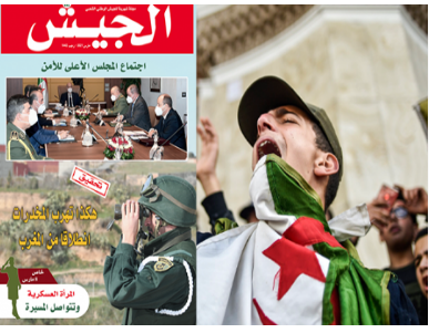 ومن جهة اخرى تقحم افتتاحية المجلة الجيش في مسالة الحراك وتجعل من نفسها ثنائية قطبية للثورة الشعبية وهذا ما يثبت فعلا ان الجيش هو من يسير حقا في الجزائر وان التغيير الذي يطالب به الحراك لا يزعج الواجهة المدنية للنظام الفعلي الحاكم في الجزائر والدليل القاطع على هذا التوجه هو ان مجلة الجيش تشير الى انزعاج ورعب كبيرين من شعار الثورة السلمية المطالب بدولة مدنية وليسيت عسكرية بل وتساءل الكاتب “اين توجد هذه الدولة العسكرية التي يرفض الاحرار وجودها وينددون بممارساتها”