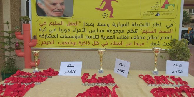 اختتمت فعاليات دوري المرحوم بوشعيب الحيمرلكرة القدم المنظم أيام 11 و14 مارس بالملعب الرياضي  لمدرسة الامراء  الخصوصية  بمشاركة  فرق من مدرسة النهضة الحسنية ومدرسة الحيمر،الذي شمل تلاميذ السادس ابتدائي والاعدادي والثانوي تحت شعار ” مزيدا من العطاء في ظل ذاكرة بوشعيب الحيمر “.
