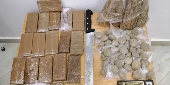 تمكنت عناصر المركز الترابي للدرك الملكي بني يخلف مساء يوم الاثنين 07 شتنبر من السنة الجارية تحت اشراف قائد سرية الدرك الملكي بالمحمديىة من حجز 3 كيلوغرامات من مخدر الشيرا وكيلو ونصف من مادة الكيف ومبلغ مالي بالاضافة الى ميزان وسكين من الحجم الكبير
