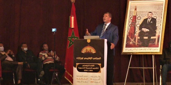 كشف سعيد أفروخ رئيس المجلس الاقليمي لورزازات، خلال لقاء تواصلي مع وسائل الإعلام والمجتمع المدني بقصر المؤتمرات بورزازات، عن برنامج تنمية إقليم ورزازات 2016-2022، وذلك بعد الانتهاء من جميع مراحل إعداد مشروع هذا البرنامج التنموي وتكريسا للمنهجية التي يتبعها المجلس الاقليمي، والمبنية على الانفتاح والتواصل، وتفعيلا للمقاربة التشاركية التي اعتمدها في اعداد مشروع برنامج تنمية الإقليم.